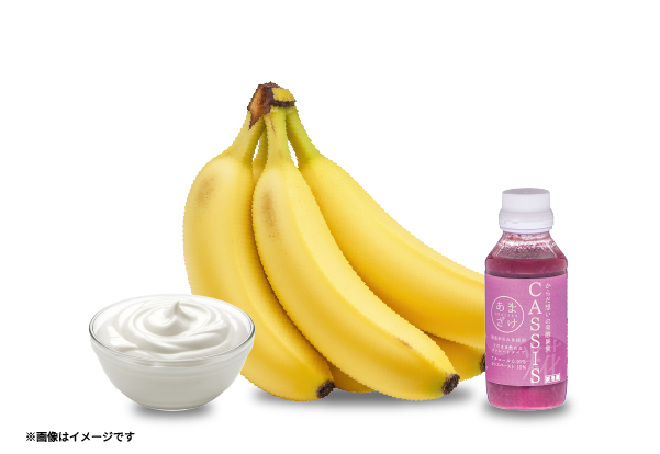 ①カシスあまざけ・バナナ・ヨーグルトを好きな分量入れてミキサーをかける。